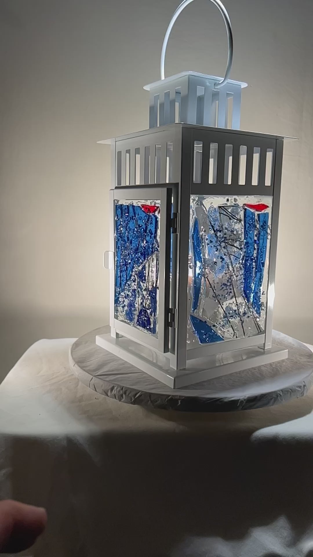 "Blue Skies" Lantern - Stained Glass and Recycled Glass Candle Holder