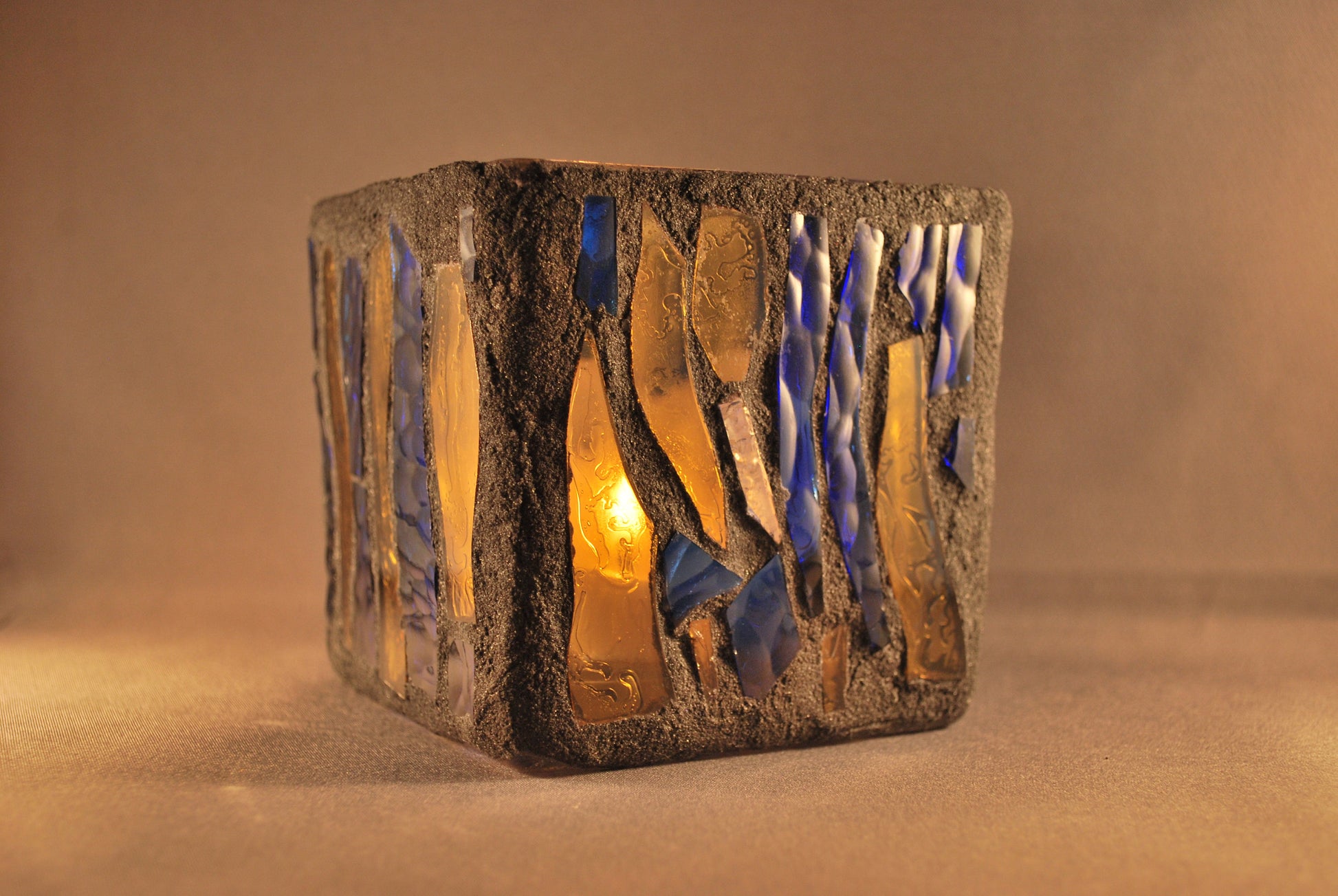 All of my products are handcrafted with care. I use high-quality, unique glass, which I design and cut by hand into beautiful pieces. These pieces are artistically arranged on glass vases and securely adhered with a strong glass adhesive. Each candleholder is finished with a complementary colored grout or a similar covering medium and coated with a waterproof, stain-resistant sealer to ensure longevity.