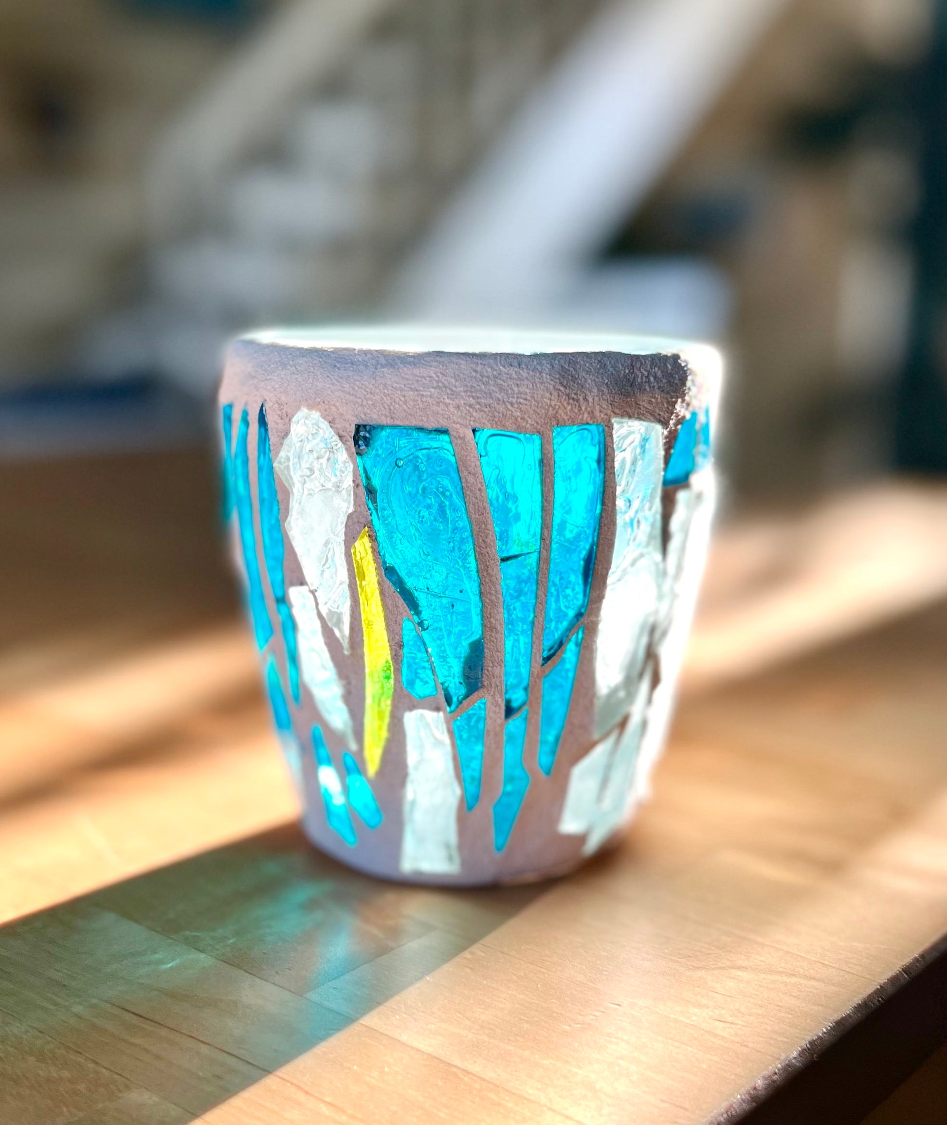"Crossroads" Stained Glass Candle Holder – 3” Tall, Full of Light