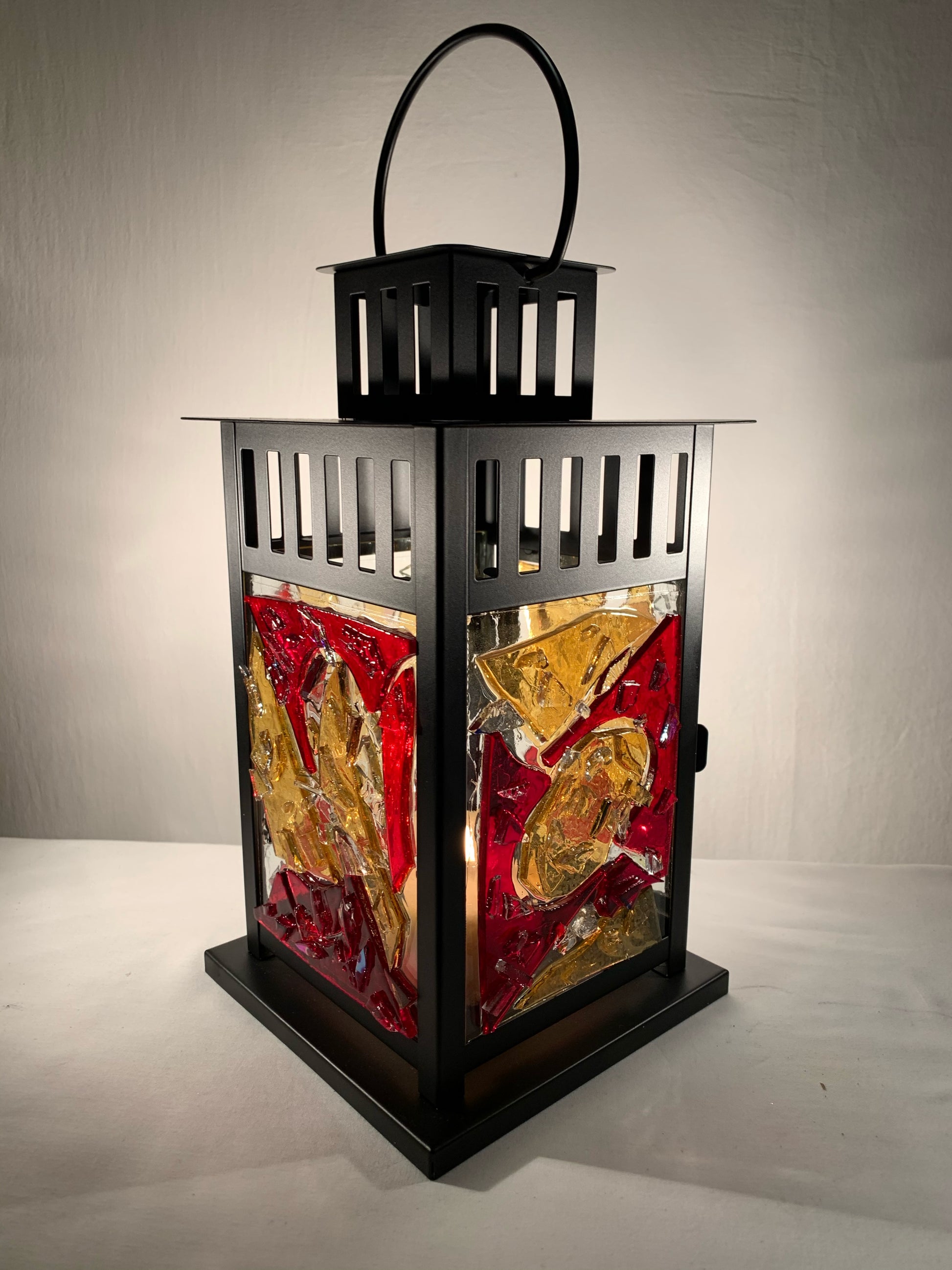Introducing "Dark Magic: The Lantern"—crafted with Crimson, Yellow, and Crystal Clear stained glass, evoking the enchanting spirit of Halloween. This piece was created with the eerie magic of the season in mind, adding a mysterious glow to any space. Inspired by my original "Dark Magic" candleholder, this lantern captures a similar vibe—both are a little dark, a little magical, and perfect for setting a captivating atmosphere.