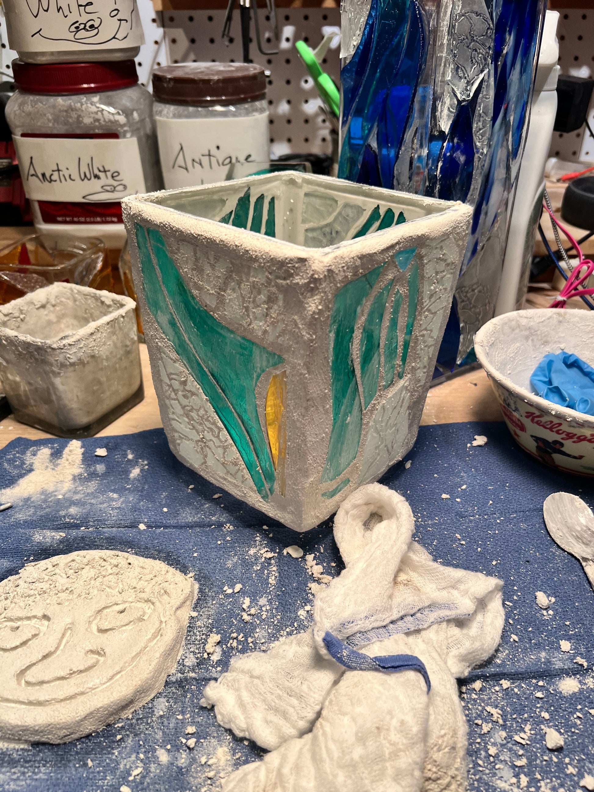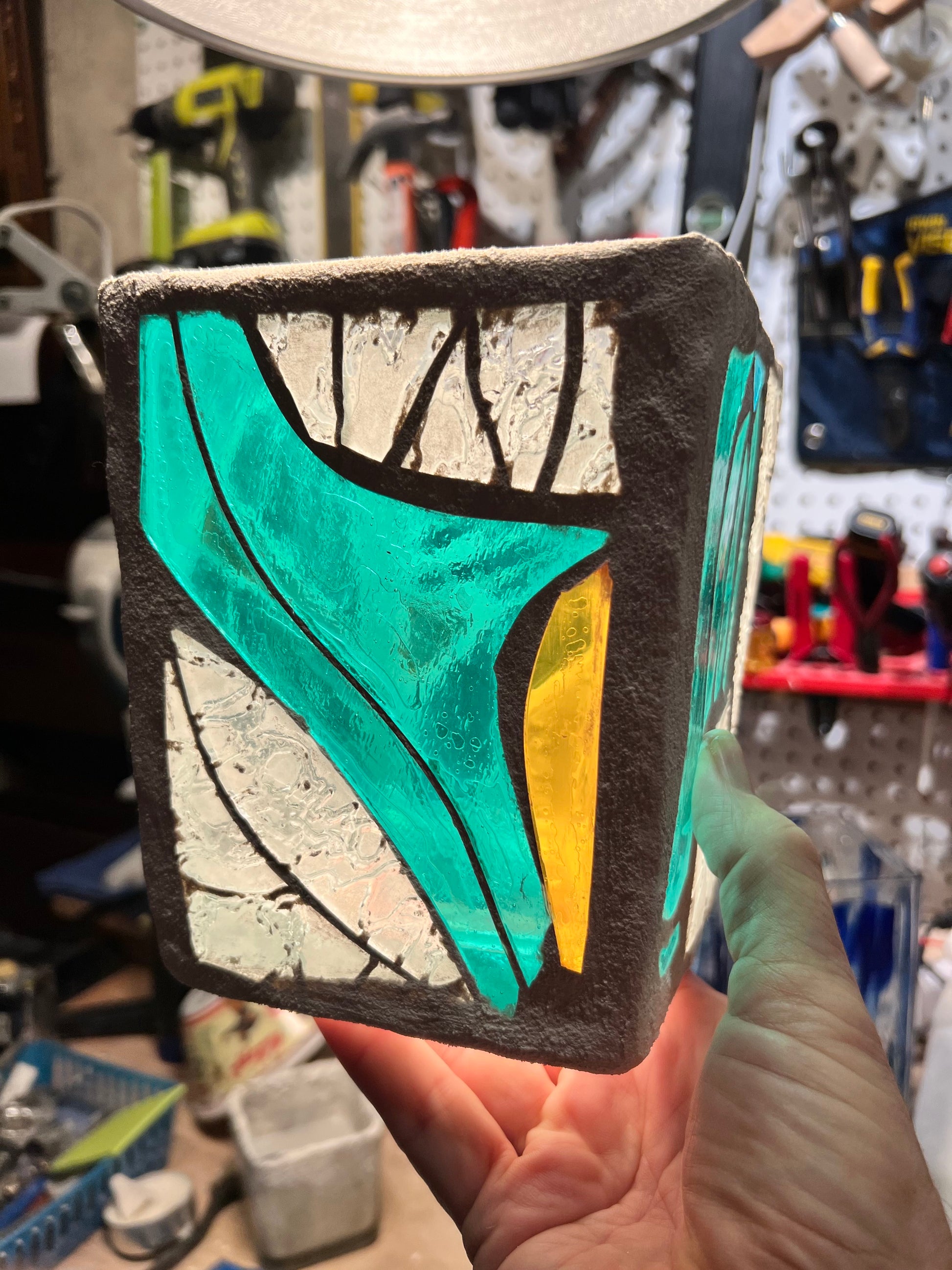 This one is made with my favorite crystal glass for extra light, finished with "Arctic White" grout. It turned out beautifully! Its sister, "Sugar Magnolia," is listed here as well, so if they reunite without my knowing, I won’t hold a grudge!