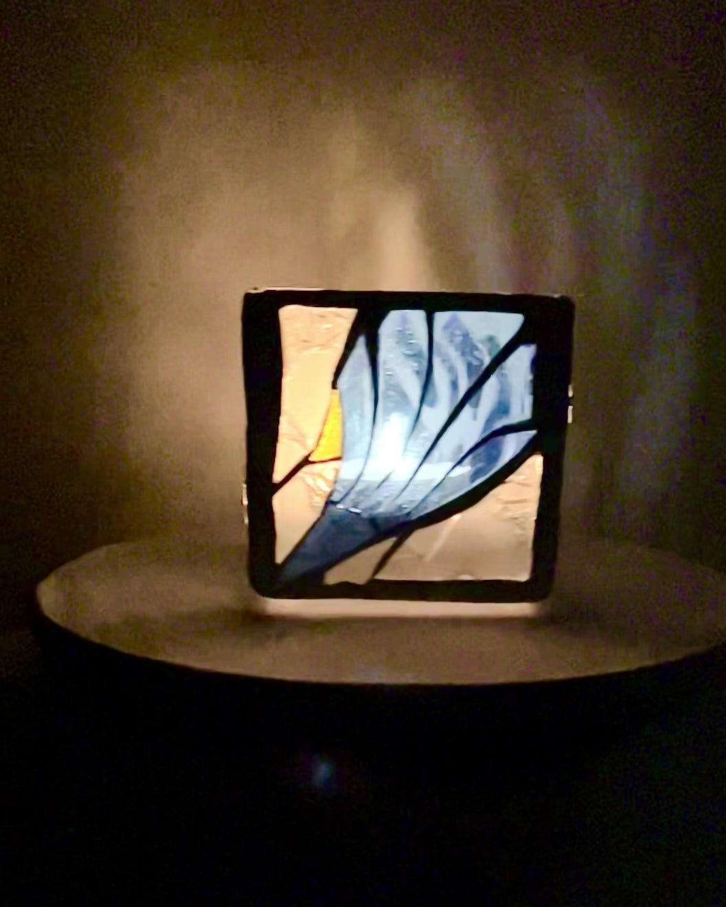 This 4x4 inch stained glass candleholder features a striking blue glass with a cone shape on one side, reminiscent of a classic summer treat. The vibrant color and unique form make it a charming addition to any space, bringing a refreshing splash of cool blue into your decor.