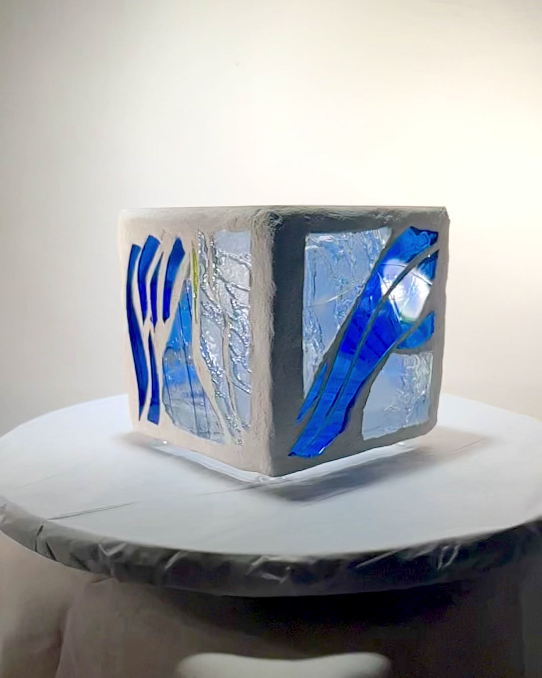 "Sno-Cone" Stained Glass Candleholder, Cool blue and clear glass for summer, or anytime!