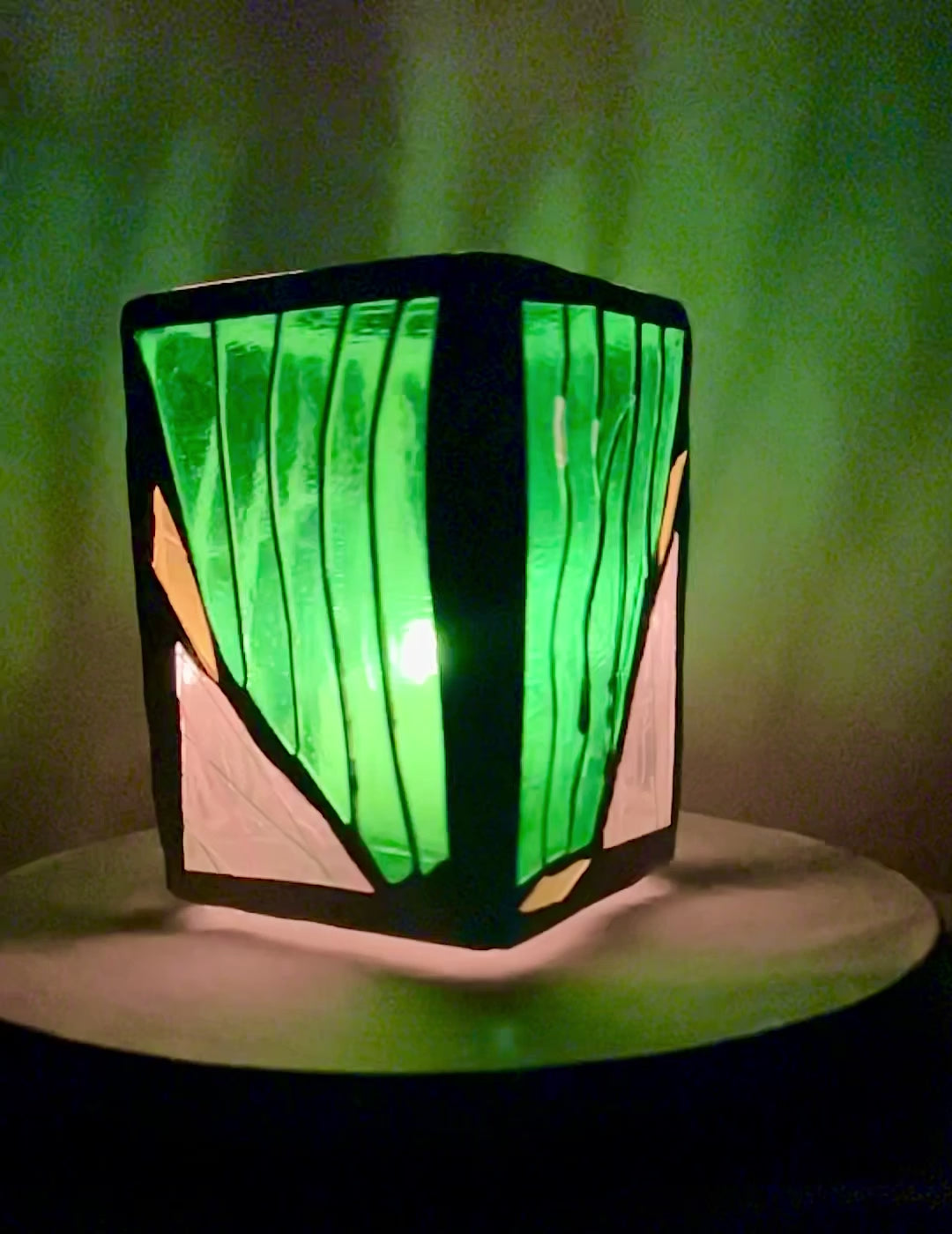 "Stalactite" Stained Glass Candle Holder – Green, Yellow, and Crystal Clear Beauty