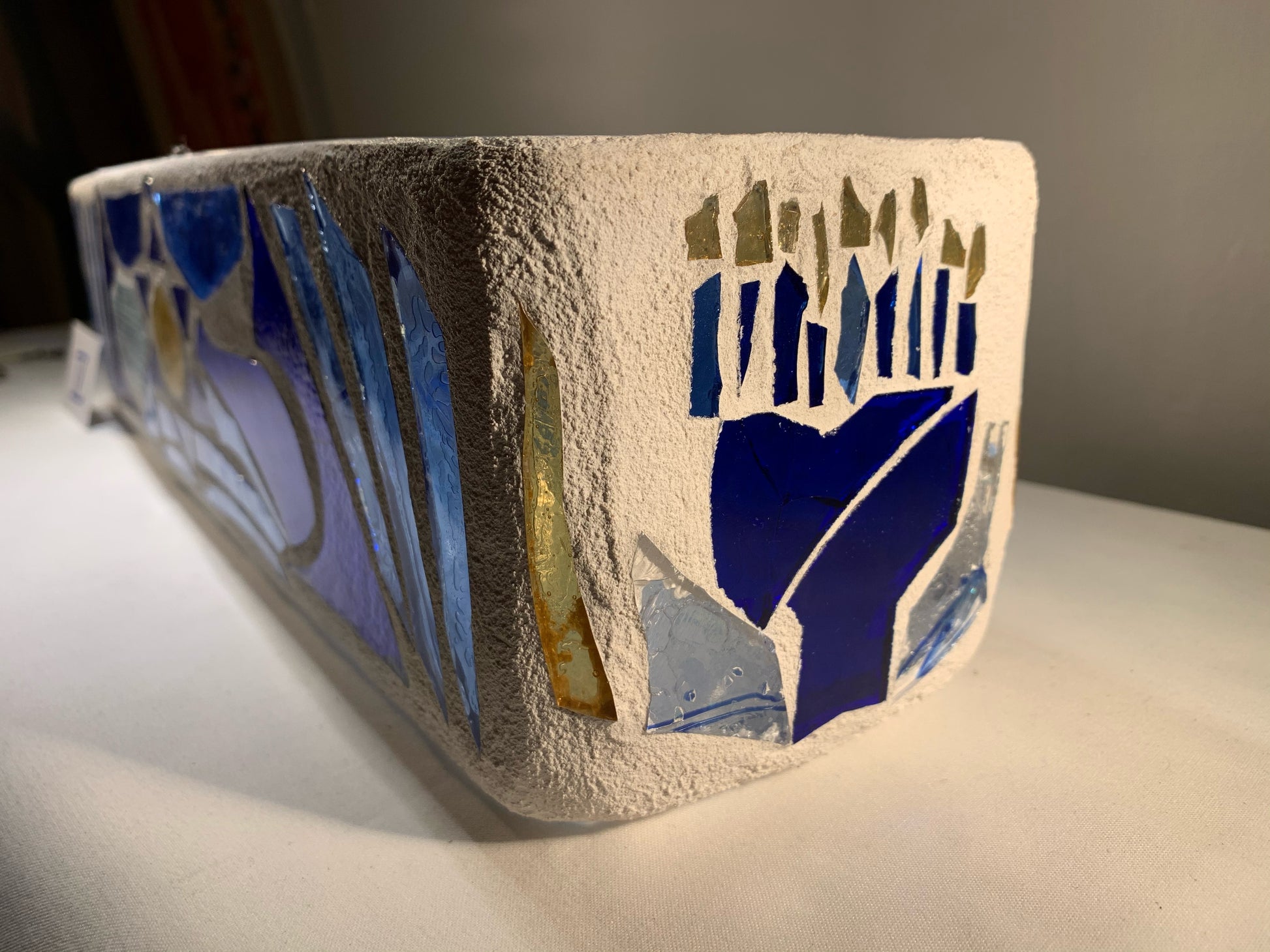 Each piece is carefully selected, hand-formed, and attached to a 16x4 inch clear glass base. The menorah is finished with antique white grout, then cleaned and polished to perfection, creating a show-stopping centerpiece for the holiday season and beyond.