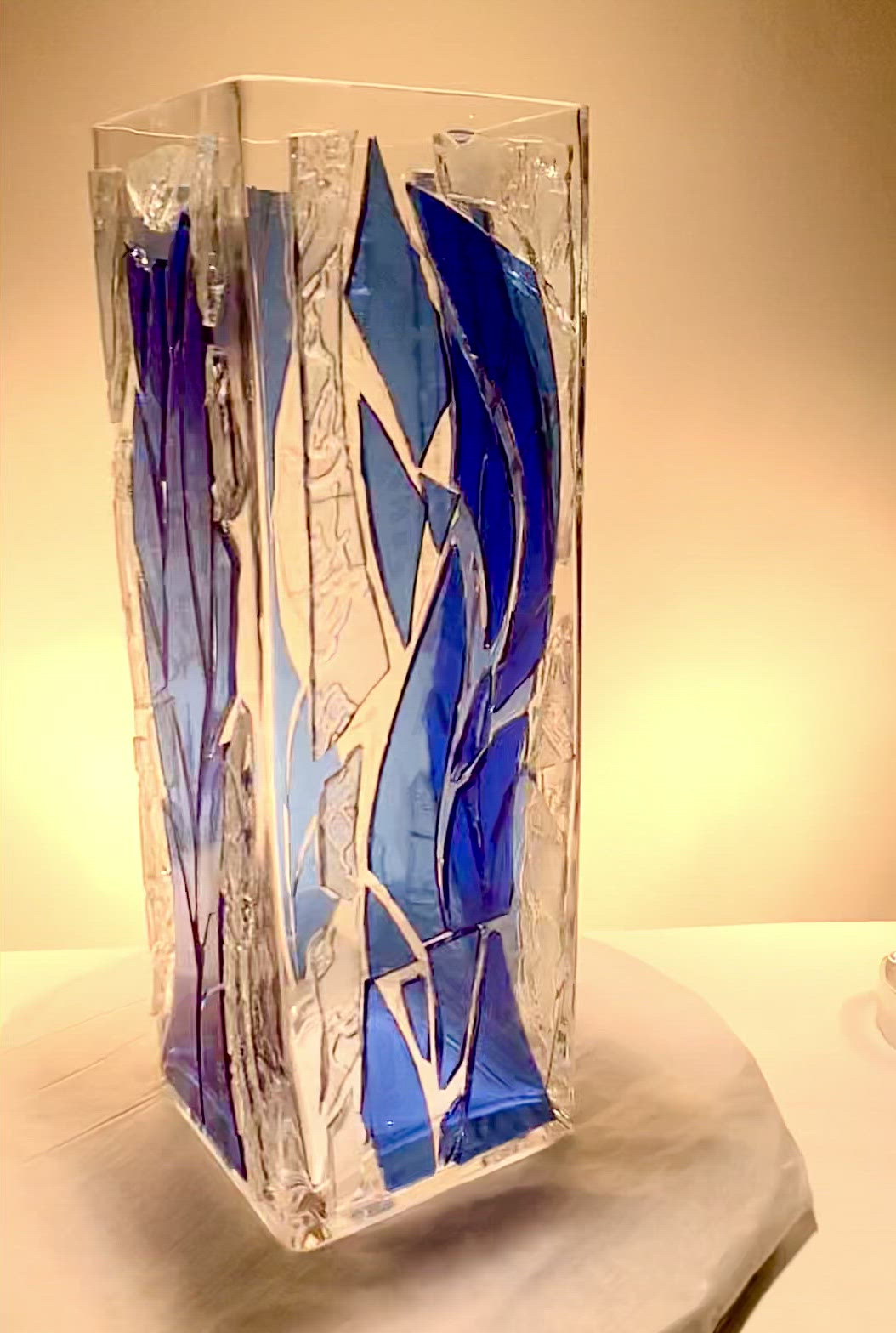 "The Blue Sea" Stained Glass Candle Holder – 4x4x12” Tall, Custom Blue Glass Design