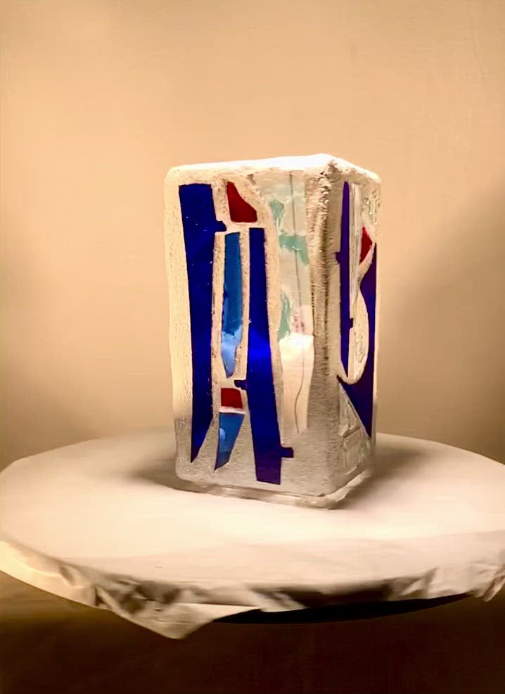 "The Blue Vessel" quickly became a customer favorite during the last Christmas season — I've crafted 8 of these beauties so far! I named it after a blue glass pitcher my mother used to have, as one of the panels reminded me of it. (When you’re the artist, you get to make the rules!)