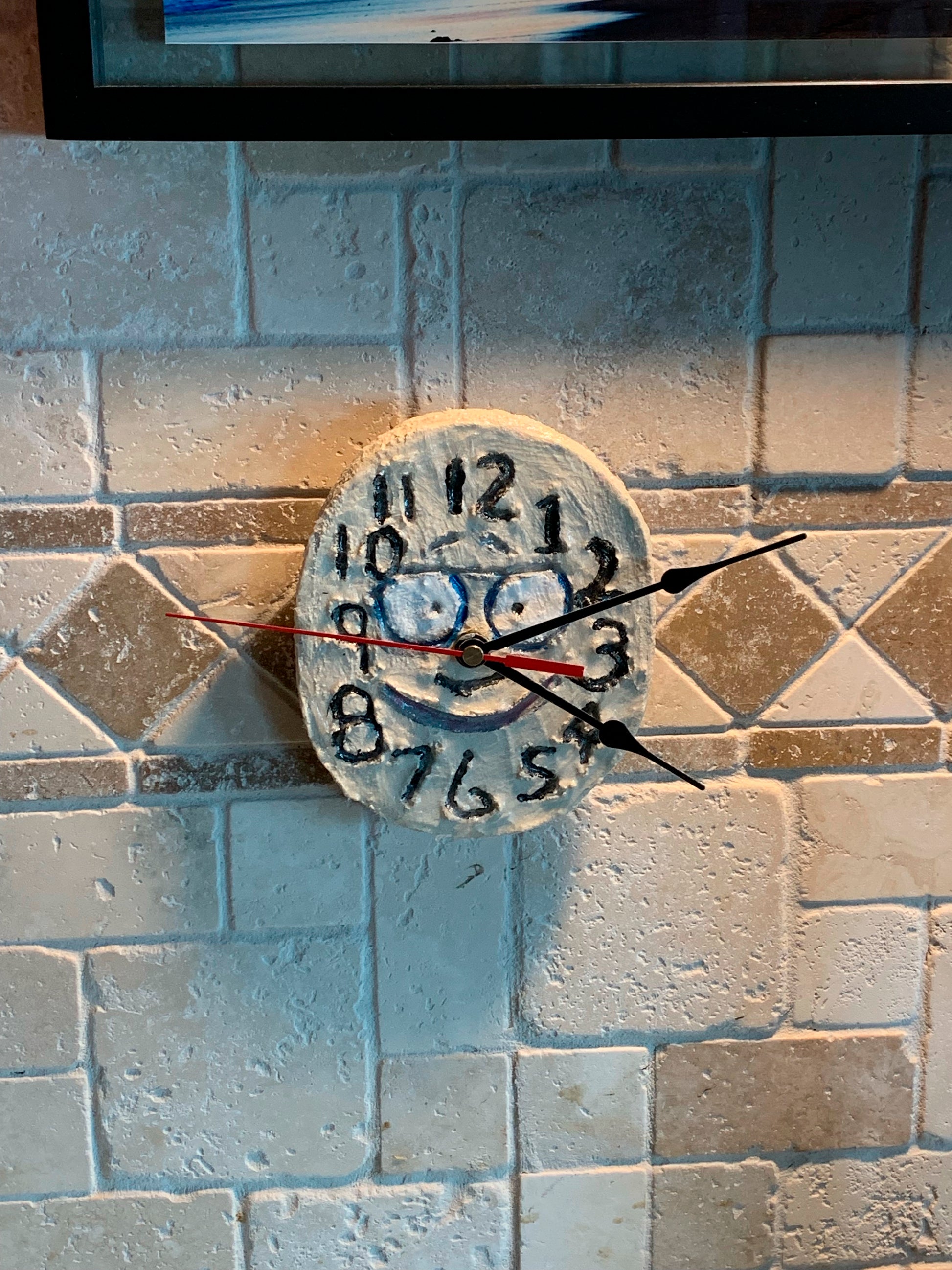 So I was looking at this guy as I painted him...wasn't in the greatest of moods...probably for no real good reason, and I was painting him upside down, again..no good reason, then turned him slowly as I progressed, and I looked him in the eye and he was smiling...apparently forever. Thats when I said it's Time to Smile.